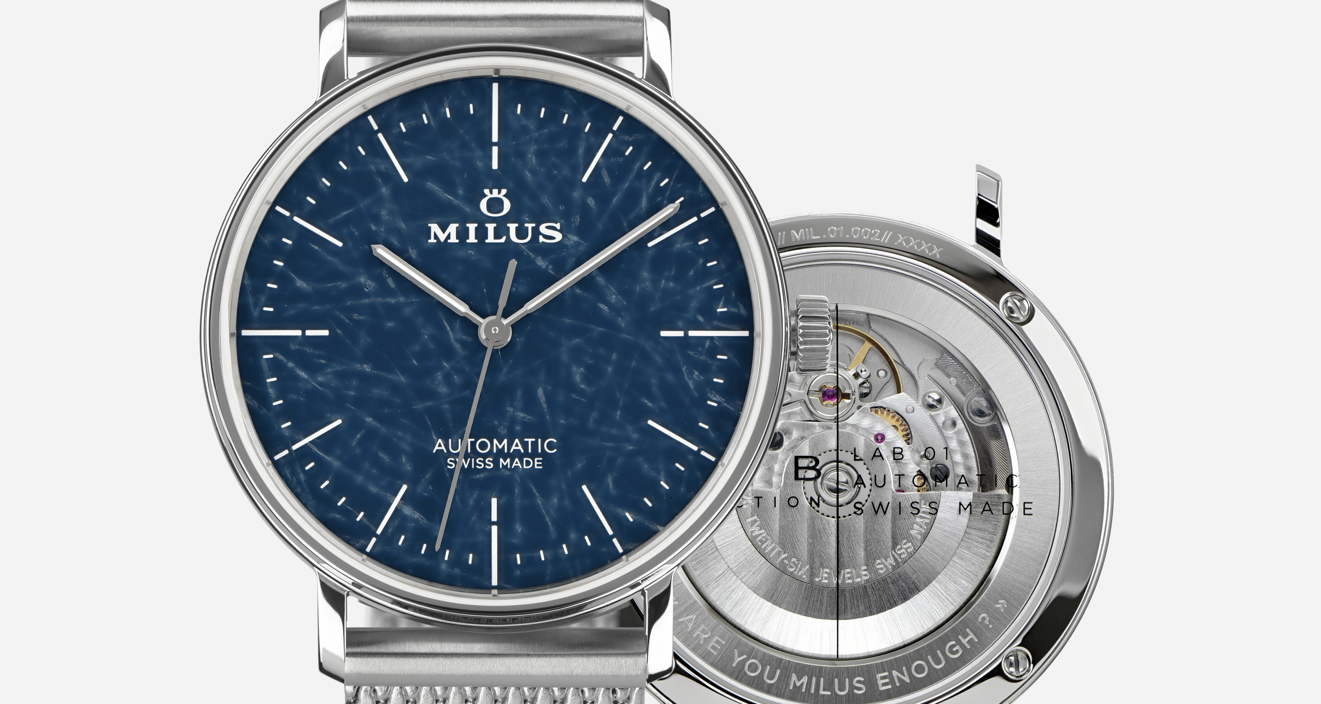 La LAB 01, comme son nom l'indique, adopte une approche plus moderne. Conçue pour ressembler à l'expérimentation Milus, la LAB 01 présente un design plus moderne et technique, particulièrement mis en valeur par l'utilisation d'un cadran exclusif en fibre de verre.